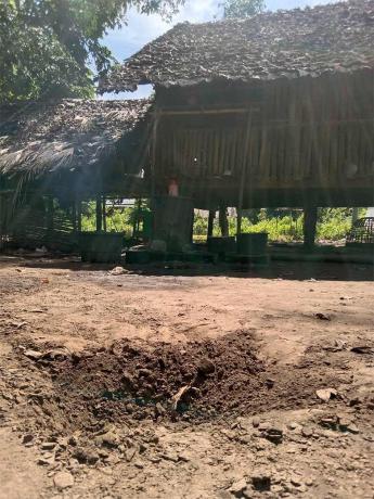 This photo was taken on August 19th 2023 in Bh--- village, P’Law area, Ler Mu Lah Township, Mergui-Tavoy District. On August 19th 2023, SAC IB #285, based in P’Law Town, indiscriminately shelled mortar rounds into Bh--- village, killing an elder woman and injuring her son. These SAC troops regularly conducted shelling in the area. [Photo: Local villager]