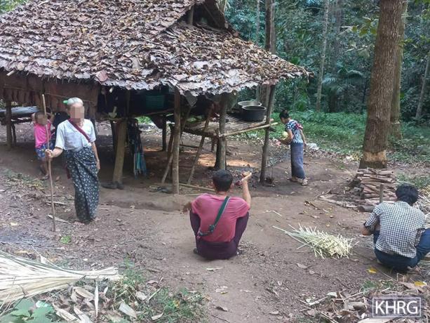 This photo was taken on February 27th 2023, in Kk--- area, Moo Township, Kler Lwee Htoo District. This photo shows Ll--- villagers who had to flee because of SAC indiscriminate shelling in villages in Kk--- area on February 24th 2023. [Photo: KHRG]