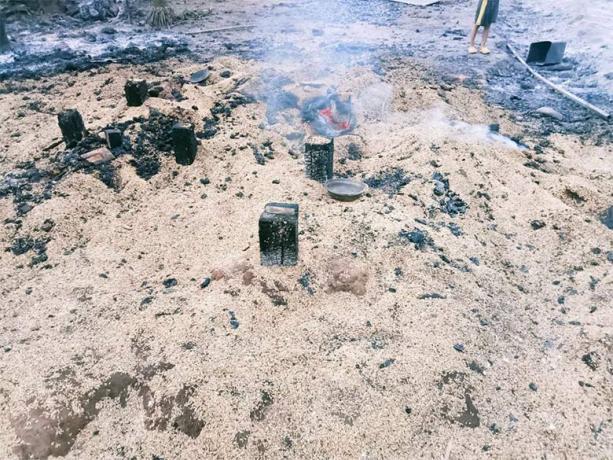 These photos were taken on December 21st 2023 in Bq--- village, Aw Poo area, Ler Mu Lah Township, Mergui-Tavoy District. On that day, SAC IB #285 shelled about 80 rounds of mortar into Bq--- village, destroying a villager’s paddy storage, two houses, and all properties inside the houses, which caught on fire. Shrapnel injured one villager on the head, who was sent to Br--- clinic, in P’Law area, Ler Mu Lah Township. The injured villager was then transferred to a hospital in Thailand. [Photo: Local village]
