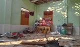 The left photo was taken on January 10th 2024 in Cw--- village, and the top photo was taken on January 11th 2024, in Cx--- village, Laung Kaing village tract, Kru Tu Township, Dooplaya District. The left photo shows the monastery in Cw--- village and the top photo shows a civilian house, owned by a Cx--- villager named Daw Cy---, both destroyed by SAC shelling of 120mm mortar rounds into the villages, on December 28th 2023. The explosions injured two children and killed another child. [Photo: KHRG]