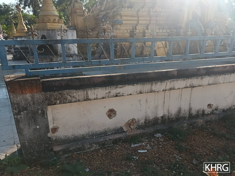 A monk named U[11] I--- explained to KHRG: “I heard that they [the SAC] said that they did not target us [the monastery]. However, in my perspective, they targeted us. They fired two mortar shells into the displacement site [their monastery], so I have some suspicions [about their intentions]. They fired five mortar shells in the monastery complex in total.” The monk also added: “During the shelling, displaced people, including persons with [physical] disabilities who sought shelter in the monastery, were hiding under a [stilt] building so they were safe. If not, at least six or seven people would have been killed, because a mortar shell landed on the place [building] where they were sleeping.” The mortar shrapnel injured a 34-year-old monk named U J--- on his right arm, as well as a 53-year-old monastery supporter [villager who helps with daily tasks] named U K--- on his left buttock. A C--- villager transported the two victims on the same night to H--- clinic, Wa Ka village tract, Kruh Tuh Township. Since the shrapnel was embedded in their bodies, they were transferred to Hpa-An hospital for further treatment the next morning. The victims have been discharged from the hospital and have [fully] recovered. [It is unknown whether they received any support for medical costs from any organisations].