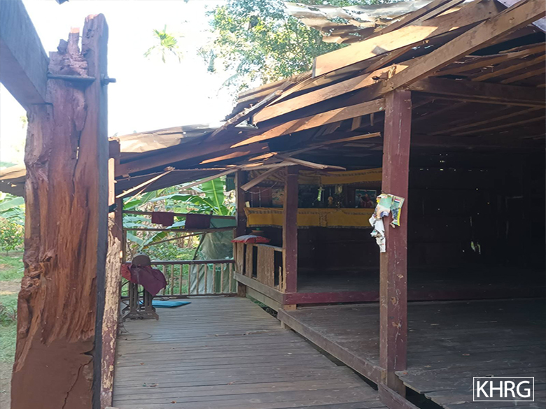 After the police station was captured [by the KNLA], at about 9 pm, SAC Light Infantry Battalion (LIB)[9] #545, under Military Operations Command (MOC)[10] #12, based near Kaw T’Ree Town, fired mortars into C--- village, Raw Keh village tract, Kruh Tuh Township [located approximately half an hour away by motorbike]. In total, 10 rounds of mortar landed in and around C--- village. Four mortar rounds landed in the village, one mortar round landed outside a [nearby] monastery complex, and five mortar rounds landed in the monastery complex. The shell that landed at the entrance of the monastery damaged a nun’s dormitory and monastery building. Around 60 people from B--- village were seeking shelter in this monastery due to [the earlier] fighting. Among the displaced, there were [vulnerable] villagers [including someone] who had a stroke and [someone with] diabetes. Monks and villagers [from C--- village] supported and provided food and hygiene [products] to the displaced.