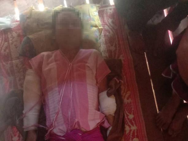 The bomb also injured three women, including Naw E--- [who Saw A--- had visited], as reported by Saw A---’s brother named Saw C---. Naw E--- was minorly injured on her face. For the other two elderly women, Naw H--- was injured severely on her stomach and Naw J--- was injured on her ear. The injured villagers were sent to B--- clinic with Saw A---.