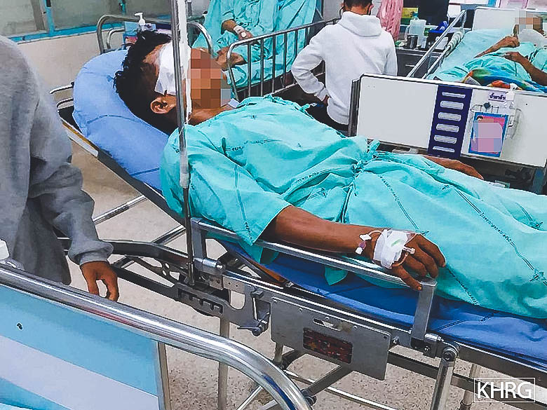 This photo was taken in November 2023 in Bp--- Hospital, Tak province, in Thailand. It shows Saw Ai---, a human rights defender, receiving medical treatment after being severely injured by indiscriminate shelling conducted by SAC Infantry Battalion (IB)[50] #32, when he went to Bg--- village, Maw Hkee village tract, Kaw T’Ree Township, Dooplaya District, to document the human rights situation in the area. A piece of shrapnel was lodged in his right eye, and finally, his eye had to be removed.[51] [Photo: KHRG]
