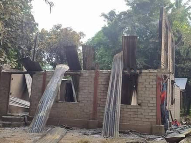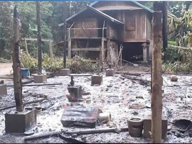 KHRG received these photos from a local villager in March 2024. The photos show some villagers’ houses that SAC troops burned down in A--- village, Htee Day village tract, Daw Hpah Hkoh Township, Taw Oo District, on November 12th 2023. [Photos: Local villager]