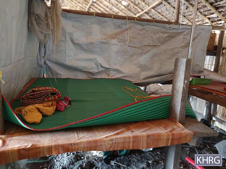 These photos were taken in January 2024, in Bv--- village, Kyaw Hta village tract, Kaw T’Ree Township, Dooplaya District. These photos show villagers from Bw--- village, Meh Naw Aa village tract, Kaw T’Ree Township, who sought shelter in By--- village due to fighting that occurred in Kyeh Done Town on January 26th 2024 between KNLA and SAC solders. [Photos: KHRG]