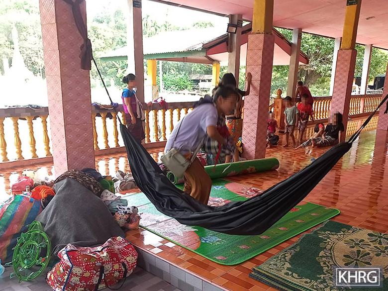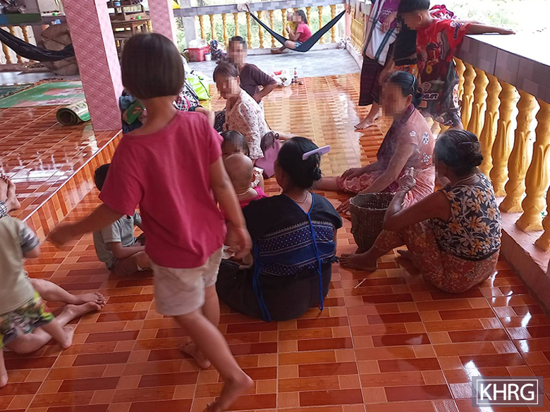 These photos were taken in January 2024, in F--- village, Kyaw Hta village tract, Kaw T’Ree Township, Dooplaya District. These photos show villagers from C--- village, Meh Naw Aa village tract, Kaw T’Ree Township, who sought shelter in F--- village, due to fighting that occurred in Kyeh Done Town between SAC and KNLA soldiers on January 26th 2024, and the SAC shelling mortar rounds in the vicinity. [Photos: KHRG]