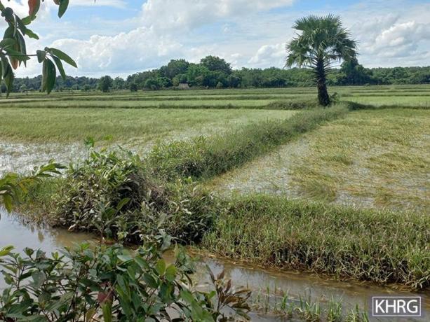 These photos were taken in August 2024, at N--- village, Ywa Tan Shin village tract, Kaw T’Ree Township, Dooplaya District. These photos show villagers’ paddy plants damaged by flooding during the rainy season. [Photos: KHRG]