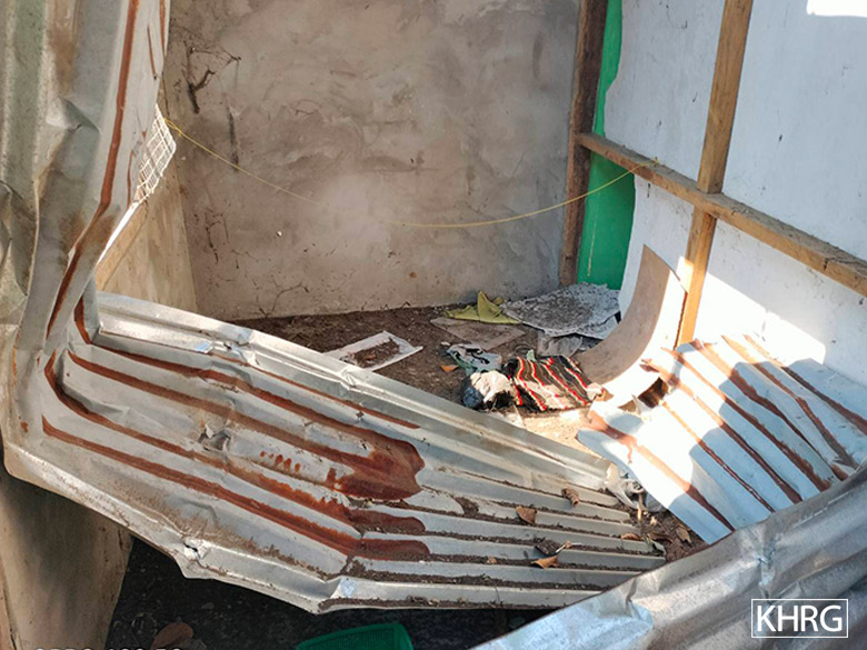 These photos were taken in December 2024 in B--- village, Way Htoo village tract, Daw Hpah Hkoh Township, Taw Oo District. These photos show two villagers’ houses that were damaged by the SAC drone attack on December 12th 2024. [Photos: KHRG]