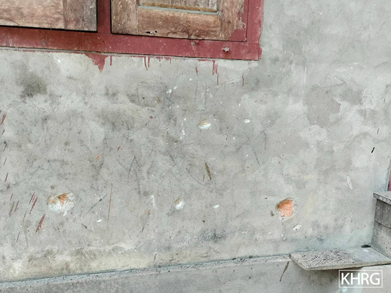 The shrapnel also hit and damaged the glass windows of Ma[9] K---’s house. Ma K--- is the oldest daughter of U J---. In addition, the shrapnel damaged L---’s house wall, the house’s roof and the house’s glass windows. L--- is the youngest daughter of U J---. The 8-year-old son of L---, named M---, [who was near the house] was hit by a small piece of mortar shrapnel and he sustained a minor injury on his right thigh. The injured villager received medical treatment at home from his family and he recovered.
