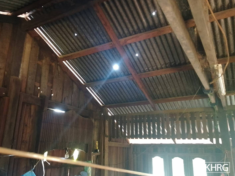 These photos were taken in October 2024 in E--- village, P’Saw Loh village tract, Daw Hpah Hkoh Township, Taw Oo District. These photos show villagers’ houses in E--- village which were damaged by the SAC shelling that was conducted on October 8th 2024. The shelling also injured four villagers, including two children. [Photos: KHRG]
