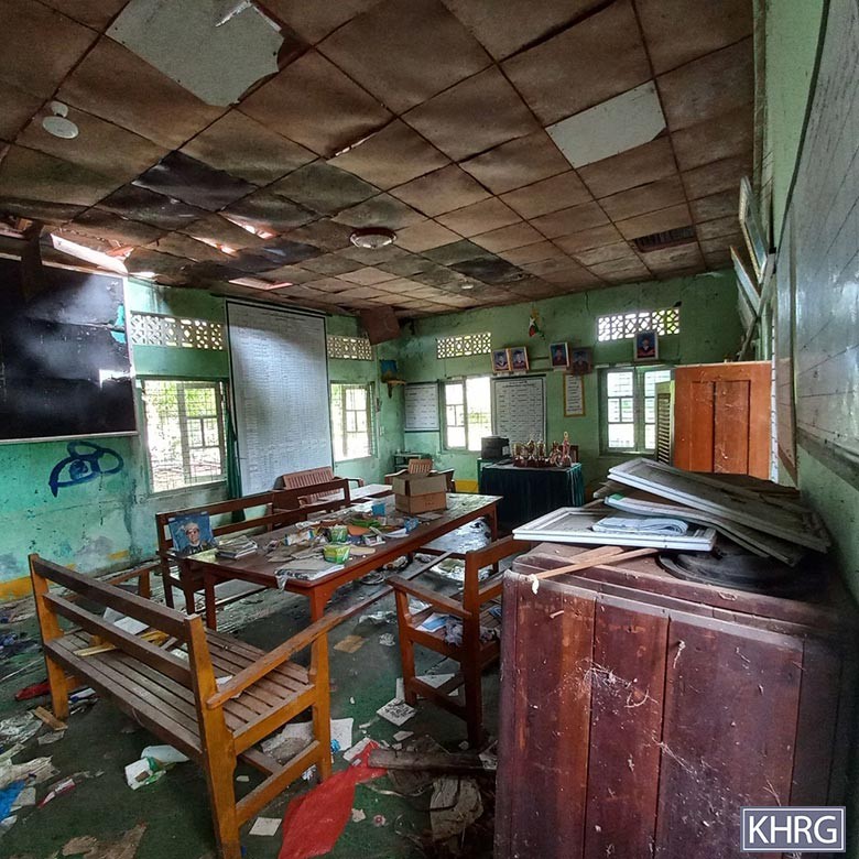 On the same day [May 8th 2024], SAC aircraft dropped bombs into Dh--- village, Kleh Muh Htee area, and destroyed a hospital and schools. On that day, at around 5 pm and 6 pm, two SAC aircraft (K8W and Mi-2) conducted air strikes on Jh---- village again [and the hospital and schools were destroyed]. In addition, on May 10th 2024, [an SAC] air strike happened on Jh--- village again. Due to Burma Army conducting air strikes [in Jh--- village], villagers’ houses, religion buildings, schools, hospital and plantations were destroyed.