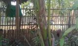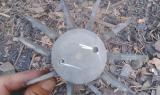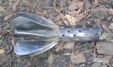 These photos were taken by a KHRG researcher in March 2025, in Zy--- village, Kyun Pin Hseik village tract, Moo Township, Kler Lwee Htoo District. The first four photos show the damage to two buildings caused by the March 7th 2025 shelling by the SAC’s LIB #599 into the village. The other two photos show the tail pieces of the mortar shells that the SAC fired. [Photos: KHRG]