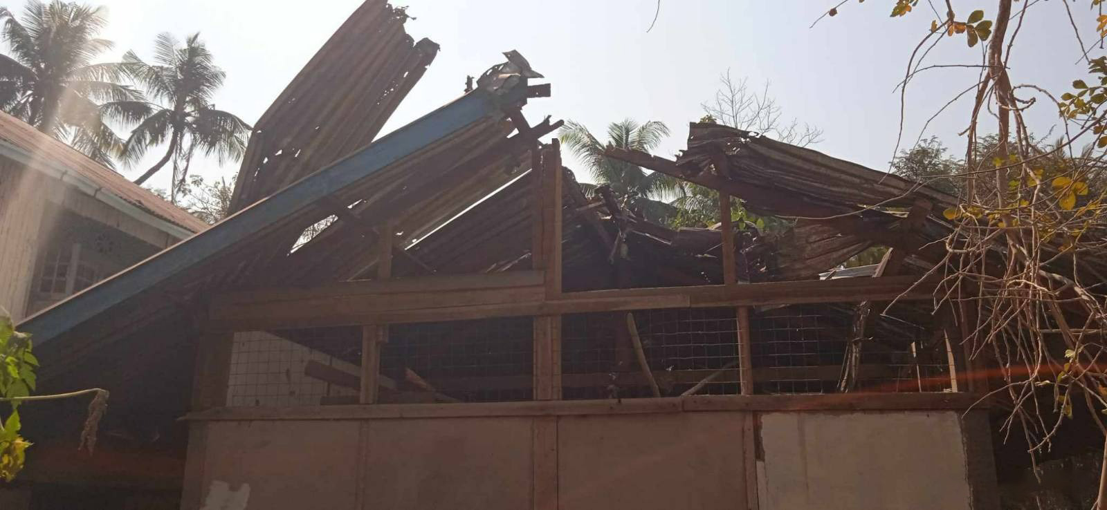 These photos were received from a villager on May 29th 2024, in Ap--- village, K’Ser Doh Township, Mergui-Tavoy District. The photo on the left shows a school that was destroyed by an SAC air strike on May 8th 2024, in Ap--- village. The photo on the right shows a hospital that was destroyed by the same air strike. [Photo: Local villagers]