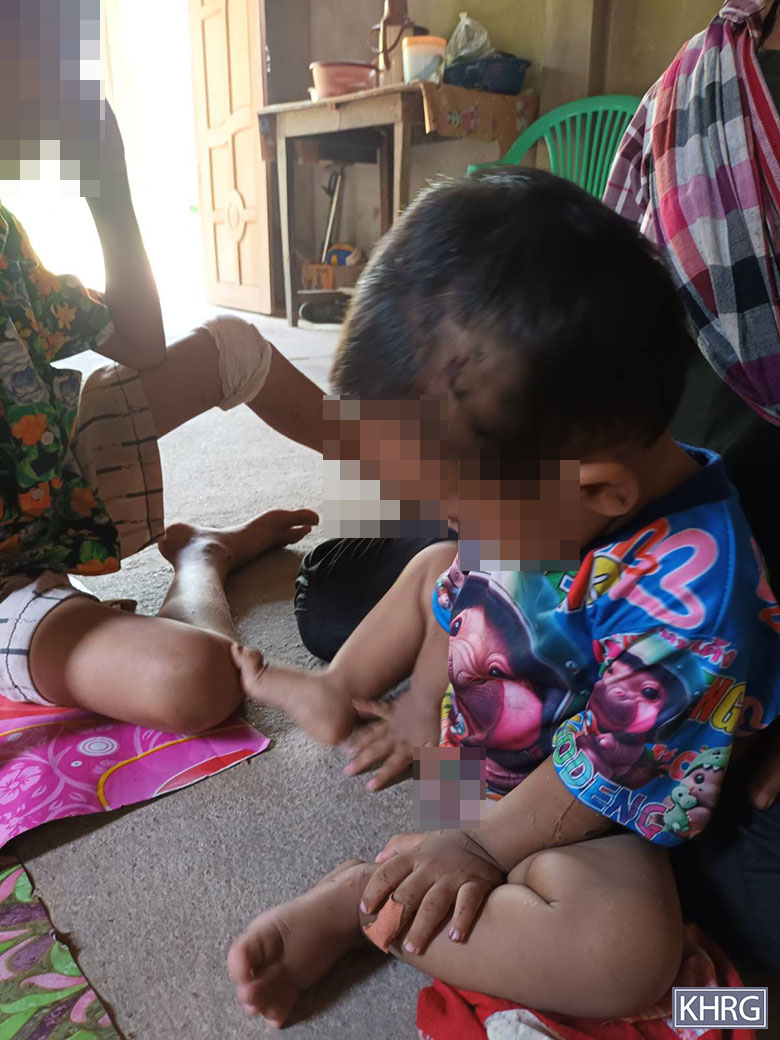 Those four children live with their grandmother because their parents work in Thailand. The victims’ family member [grandmother], named Daw E---, explained to KHRG: “The shelling destroyed the entire hut. Fortunately, the children were lucky and sustained only minor injuries, and none of them were in life-threatening danger.”