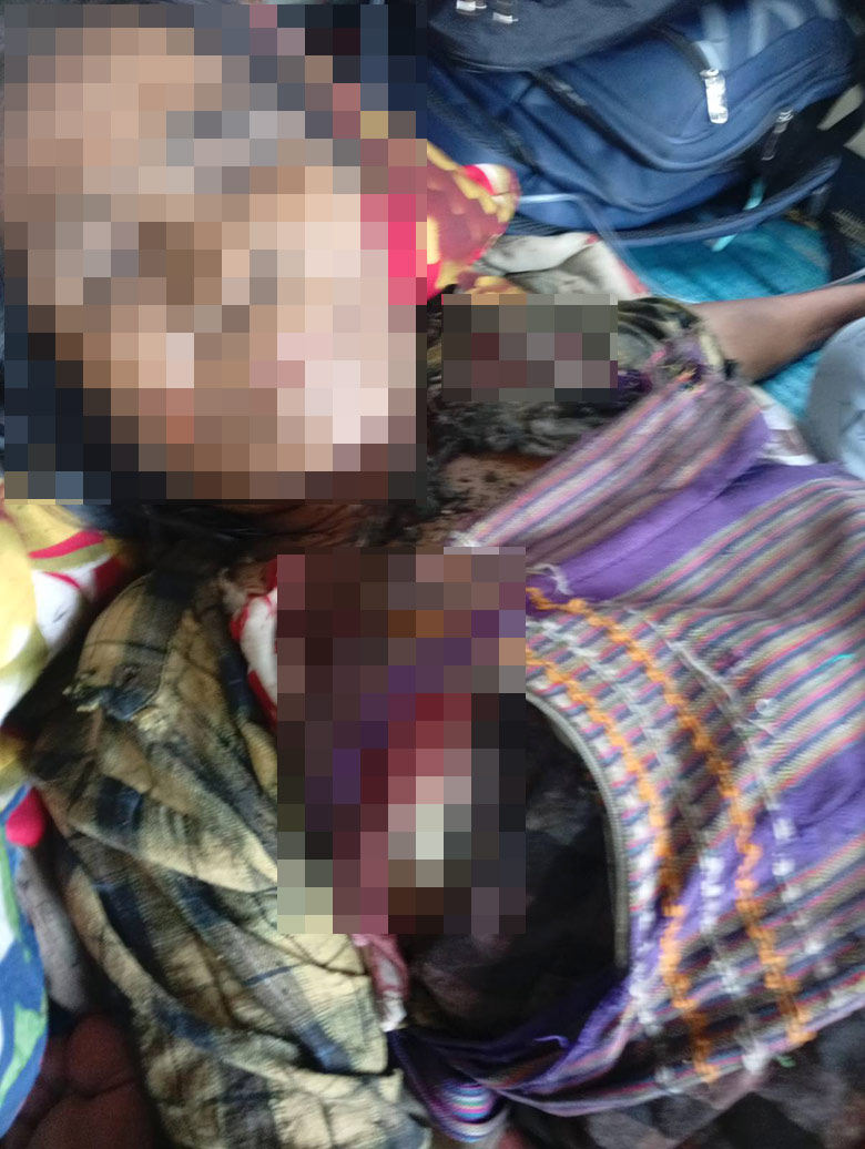 KHRG received this photo from an officer of Noh T’Kaw Township’s KNU Documentation Group[10] on 21st July 2025. On July 12th 2025, a villager stepped on a landmine near the SAC army camp of Infantry Battalion (IB) #283, located near Seik Gyi Town, in Noh T’Kaw Township, Dooplaya District. The photo, taken on the way to the hospital, shows the 60-year-old villager, Daw A---, who lost both legs and sustained injuries to her body due to the landmine explosion. She died at the hospital two days later. [Photo: local authority].
