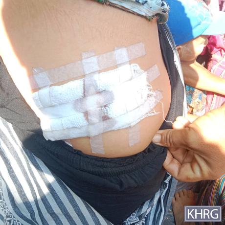 The first incident was reported by a local villager from Aa--- village, and a KHRG researcher went to meet him to document it. [The researcher met with one of the victims, Naw W---, and took photos of her injuries.] However, the researcher was unable to record all the details of the incident. Then, in January 2025 [specific date censored for security], the KHRG researcher travelled to a displacement site in Ma Htaw village tract to see the monk [the other injured villager] who had returned from receiving treatment. He then interviewed the monk to document further details about the incident that took place on March 22nd 2024. The second incident was reported by a local leader from Meh Klaw village tract [specific position censored for security], and in March 2024 [specific date censored], a KHRG field researcher went to Aa--- village to document the incident. [The researcher then informally interviewed a local Aa--- villager. He also briefly met with Sai T---, the injured villager, and took photos of the injury.]