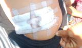 It [shrapnel of the explosion] also hit Naw W--- (38 years old) on the hip. The healthcare workers from the same village treated her injury in the village for free, as she was not seriously injured. After, Naw W--- went to live in Dd--- Town, Bu Tho Township.