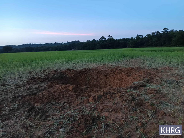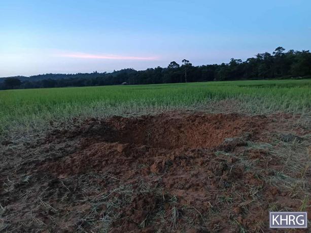 On October 9th 2025, at around 8:22 pm, a fighter jet [of the Burma Army] dropped two 500 pounds bombs [near] Aa--- village, K’Ter Tee village tract, Dwe Lo Township, Mu Traw District. One of the bombs landed and exploded on a farm close to the village, while another bomb landed close to a house of a villager and remained unexploded. So, the air strike did not cause any casualties to villagers and their domestic animals. It only damaged the farmland where it landed and exploded.  As it was raining and thundering that night, villagers could not recognise the sound of the aircraft engine when it came.