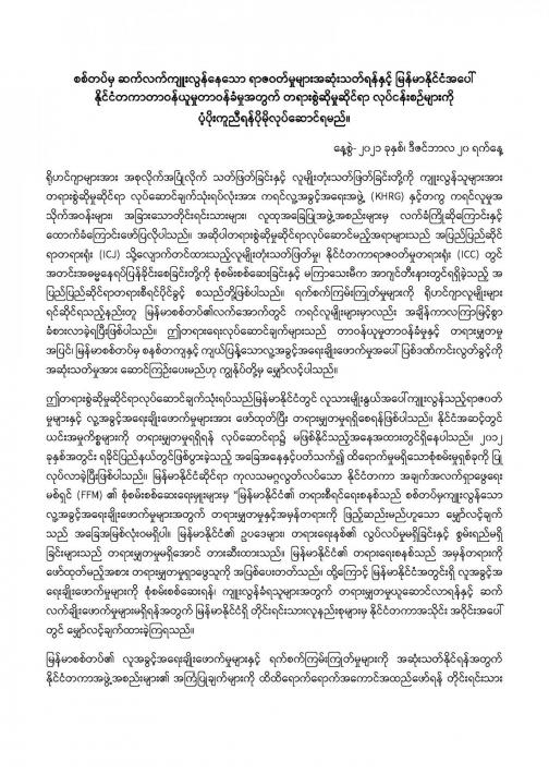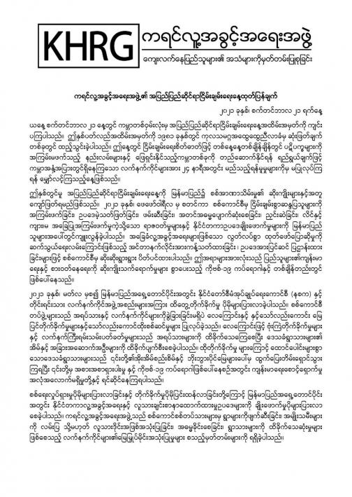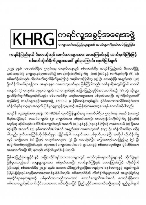 အနာဂတ်တွင် ဖြစ်ပွားလာနိုင်မည့် လူအခွင့်အရေးချိုးဖောက်မှုများကို ကာကွယ်ရန်နှင့် မှတ်တမ်းပြုစုရန်အတွက် ကျွန်ုပ်တို့မှ CBOs နှင့် EAOs များအား လူ့အခွင့်အရေးအသိပညာသင်တန်းများနှင့် အပြည်ပြည်ဆိုင်ရာလူသားချင်းစာနာထောက်ထားမှု ဥပဒေများဆိုင်ရာ သင်တန်းများကို ပို့ချသင်ကြားပေးပါသည်။