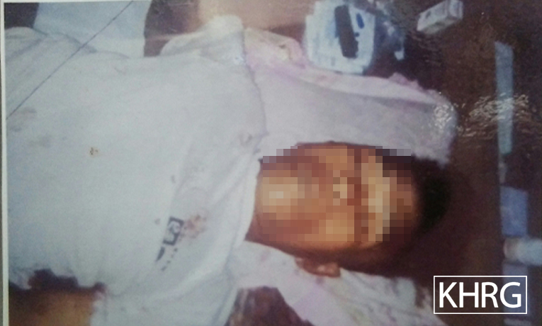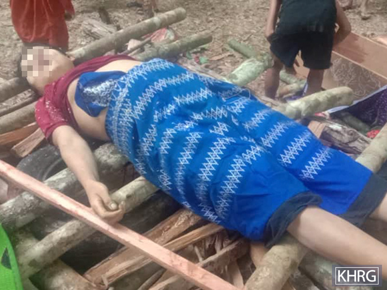 ပုံတွင် အသက်၂၄နှစ်အရွယ်ရှိ မွန်ရွာသားတစ်ဦးဖြစ်သူ စ---အား မွန်လူမျိုးဖြစ်သူ DKBA စစ်သားတစ်ဦးဖြစ်သည့် ဝင်းသူမှ ပစ်သတ် ခဲ့ပြီး ၎င်း၏ရုပ်အလောင်းကို ပြသထားသောပုံဖြစ်သည်။ (ဓာတ်ပုံ- ဒေသခံ ရွာသားတစ်ဦး)