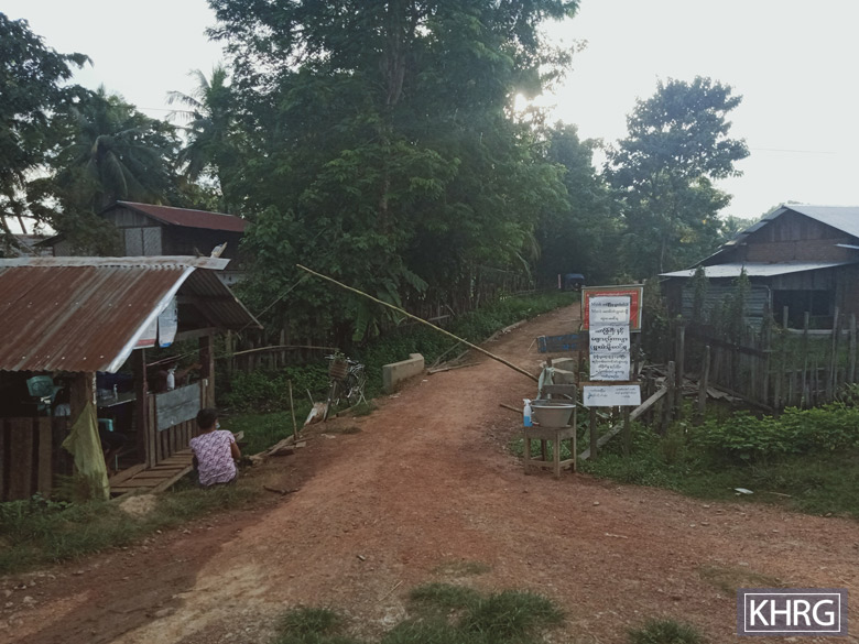 ဤဓာတ်ပုံကို ၂၀၂၀ ခုနှစ်၊ အောက်တိုဘာလ ၉ရက်နေ့ ခလယ်လွီ ထူခရိုင်၊ မူး(မုန်း)မြို့နယ်၊ နို့ညလာကျေးရွာအုပ်စု၊ ဝဒို့ကလားကျေး ရွာတွင် ရိုက်ယူခဲ့ပါသည်။ ဓာတ်ပုံထဲတွင် ရွာအဝင်တွင်ရှိနေသော ကိုဗစ်-၁၉ စစ်ဆေးရေးဂိတ်ကို တွေ့မြင်နိုင်ပါသည်။ ရွာသားများမှ စစ်ဆေးရေးဂိတ်တွင် အလှည့်ကျတာဝန်ယူကြပါသည်။ အပြင်လူ များ ရွာအတွင်းသို့ဝင်၍မရပါ။ (ဓာတ်ပုံ- KHRG)