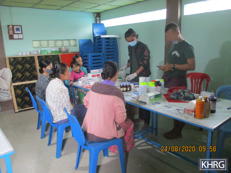 Free Burma Rangers ဝန်ထမ်းများမှရွာသားများကို ကျန်းမာရေး ဝန်ဆောင်မှုသွားပေးနေခြင်းဖြစ်ပါသည်။ ကိုဗစ်-၁၉ စတင်ဖြစ်ပွား ချိန်မှစ၍ အစိုးရဝန်ထမ်းများမှ ရွာသို့ ကျန်းမာရေးဝန်ဆောင်မှုလာ ပေးခြင်းများ မရှိတော့ပါ။ ထို့ကြောင့်ရွာသားများမှ FBR ၏ ကျန်းမာ ရေးဝန်ဆောင်မှုများကိုကြိုဆိုပြီး ထိုဝန်ဆောင်မှုများကို ရရှိသည့်အ တွက်ဝမ်းသာကြပါသည်။ (ဓာတ်ပုံ- KHRG)