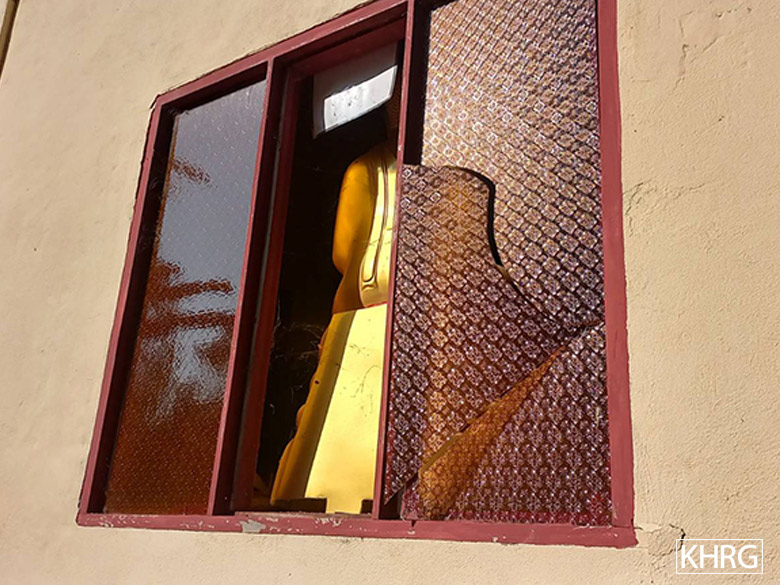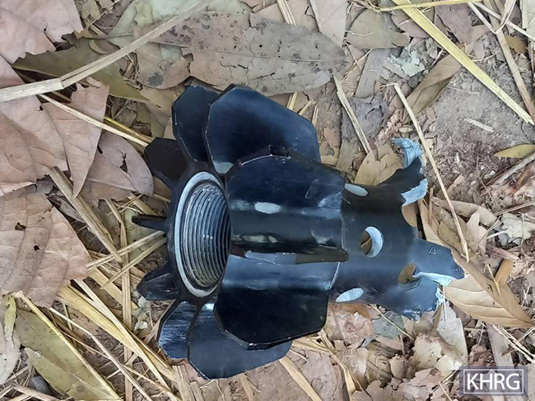 ဤဓာတ်ပုံများကို ၂၀၂၅ ခုနှစ်၊ မတ်လအတွင်း ဒူးသထူခရိုင်၊ ဘားအံမြို့နယ်၊ မဲကနကျေးရွာအုပ်စု၊ အလ--- ကျေးရွာဘုန်းကြီးကျောင်းဝင်းထဲ တွင် ရိုက်ယူခဲ့သည်။ ပုံတွင် စစ်ကောင်စီတိုက်လေယာဉ်တစ်စီးမှ ဟော်ဝှစ်စာ (၁၂၂) မမ ဖြင့် လာရောက်ကြဲချခဲ့ပြီး အလ--- ကျေးရွာဘုန်းကြီး ကျောင်း၏ ပြတင်းပေါက်မှန်အား ဗုံးစထိ၍အနည်းငယ်ပျက်စီးသွားသောအခြေအနေကို ဖော်ပြထားသည်။ (ဓာတ်ပုံ - KHRG)